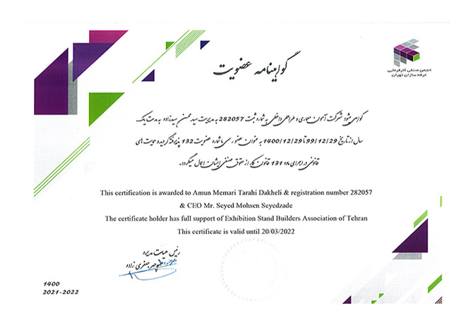 Amoon Memari company was registered in 2006 and since 2014 it has been an official member of the Exhibition Stand Builders Association.